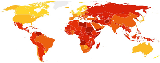 Figure A1. Corruption Perceptions Index 2016. Lighter color less corruption. Darker color more corruption. Source: Transparency International www.transparency.org/cpi.