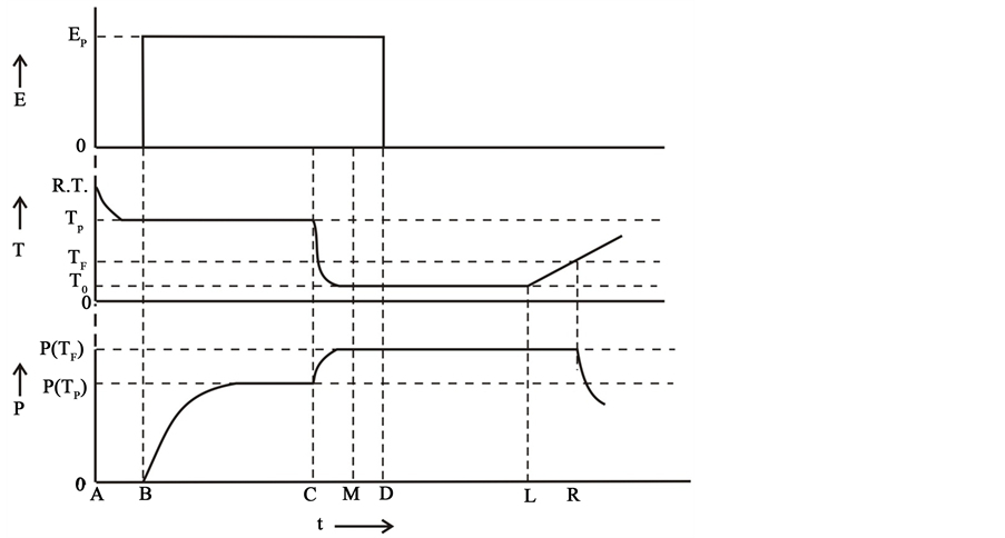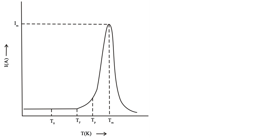 with the passage of time t as shown in Figure 1. When the temperature is increased to TF corresponding to point R of Figure 1, the frozen-in polarized IV dipoles become able to depolarize or disorient [6] and continue depolarizing exponentially with the increasing temperature resulting in the appearance of depolarization current I. Resulting depolarization current I can be recorded expe-