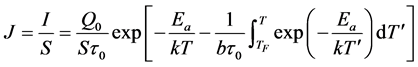 Corresponding to recorded ITC spectrum expressed through Equation (6), depolarization current density (J) is represented by