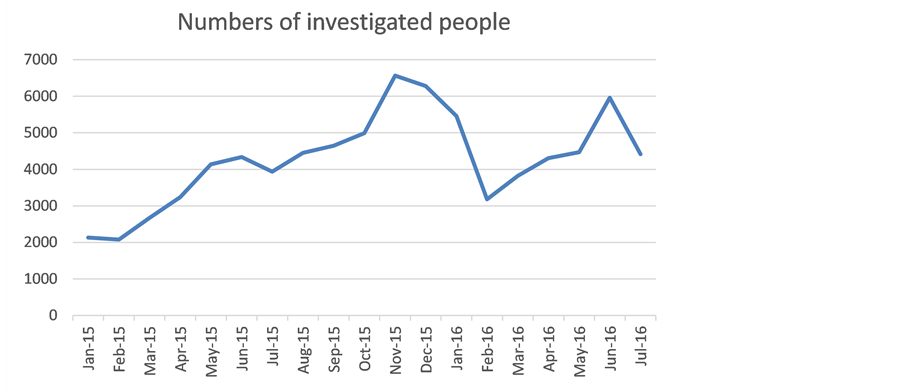 Figure 7. Trends of the number of investigated township level cadres in 2015-2016.7.