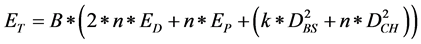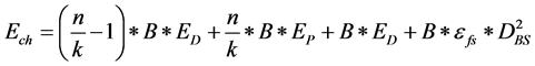 ・ Energy spent to send the packets from the sensor nodes to the CHs.