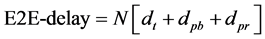 The time taken to complete the secure data aggregation refers to the time taken to transfer a packet across a sensor network from the sensor to CHs and CHs to BS. The equation to estimate the End-to-End (E2E) delay is defined as follows,