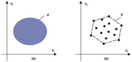 Figure 1. Training sets: (a) X is an infinite set of xs; (b) X is a finite set of xs.