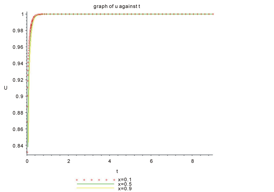 Figure 3 compares the graph of Exact with the MVIM. It is also to be noted that both graphs of Burger-Fisher and generalized Burger-Fisher as shown in Figure 1 and Figure 3, respectively, justify the conclusion that the two equations approaches the same steady state. However, as