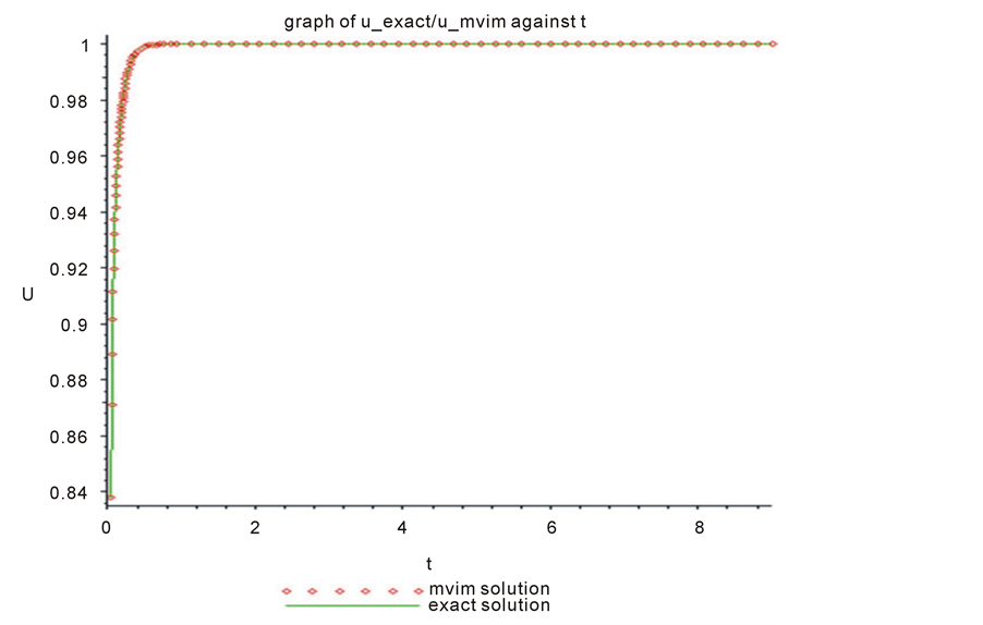 Figure 3 shows the graph of exact solution and MVIM solution. Figure 4 also represents graph of gBF when