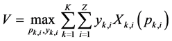 where V denotes the transmission capacity of the CR user, Fth represents the total tolerable interference at primary and O represents the maximum power constraint at the CR network.
