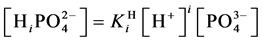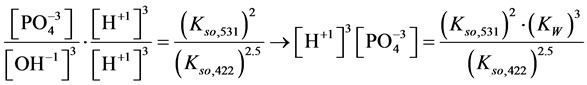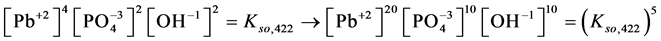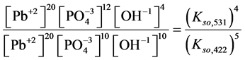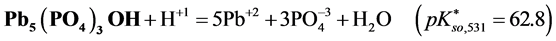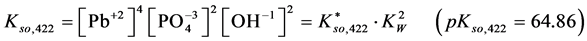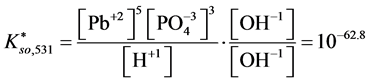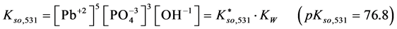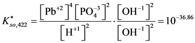 In this system, the physicochemical data related to another solid phases: Pb5(PO4)3OH and Pb4O(PO4)2 as precipitates are also cited in literature [12] [13] ; however, the solubility products for these species are formulated there in an unconventional manner. The unification of the solubility products to conventional notation will be the first, preparatory step for further considerations. The expressions for solubility products, formulated unconventionally, will be denoted as