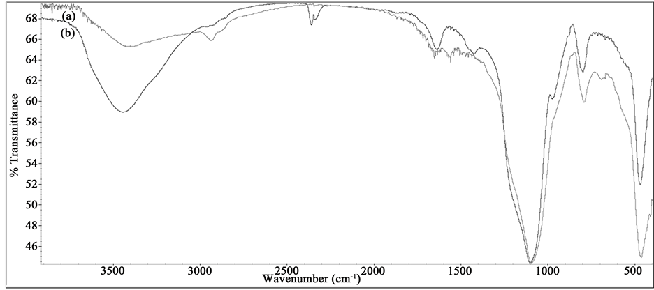 Figure 3. IR spectrum of (a) a modified capillary and (b) a bare capillary.