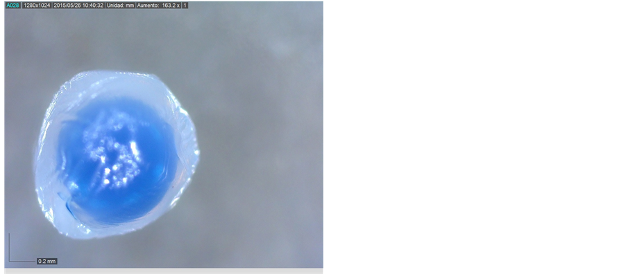 Microcapsules were dried at 60˚C during 2 hours. This temperature was selected due to the alginate gels formed at temperatures between 0˚C to 100˚C, and because they do not melt when heated [19] .