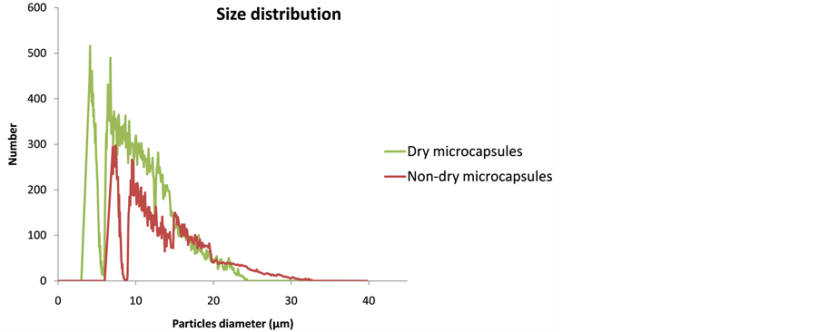 Figure 4 shows the particle size distribution of non-dry and dry microcapsules, certain differences can be observed, and also that these results meet with the morphology results.
