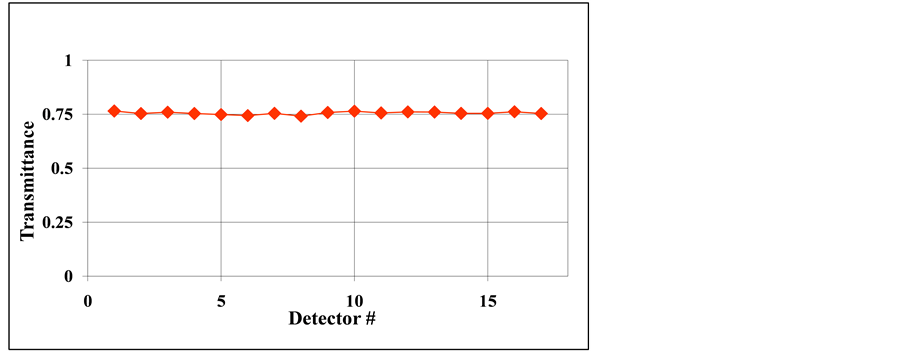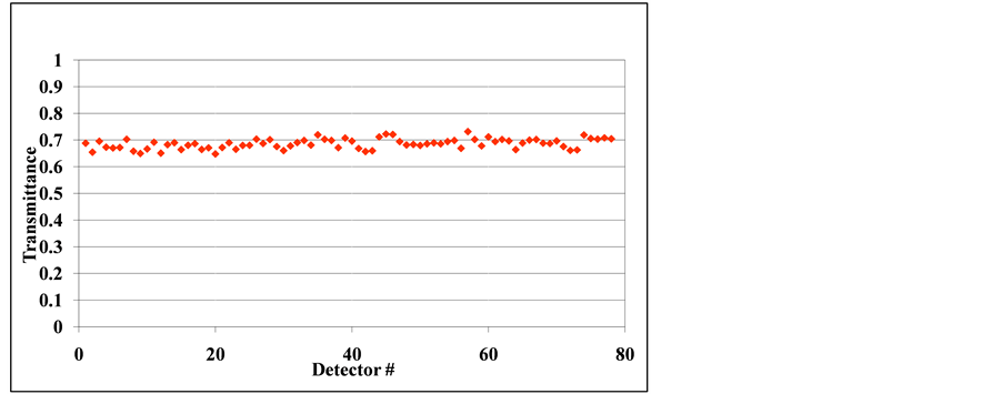Figure 6. Transmittance of 78 different TLD-500 detectors.