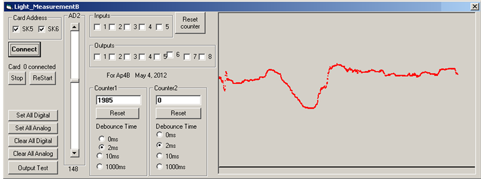 Figure 10. Window used for the measurement of light with the K8055 card.
