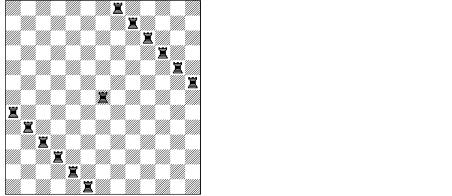 the rooks placed in the alternating and occupied, center squares are vertically adjacent to the rooks placed along diagonals with the sum of