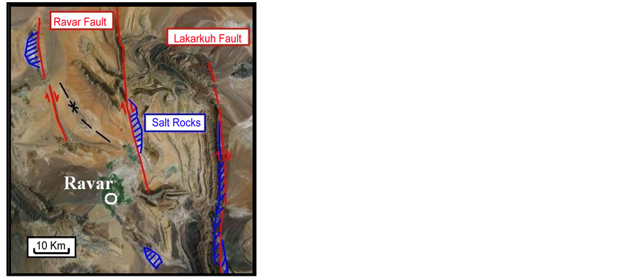 At this province, there are separate individual salt domes, at a north-south trending faults. The salt domes are related to upper Jurassic salt formation [21] along Ravar fault and diapiric unit of Ravar series along Lakarkuh fault (Figure 7).