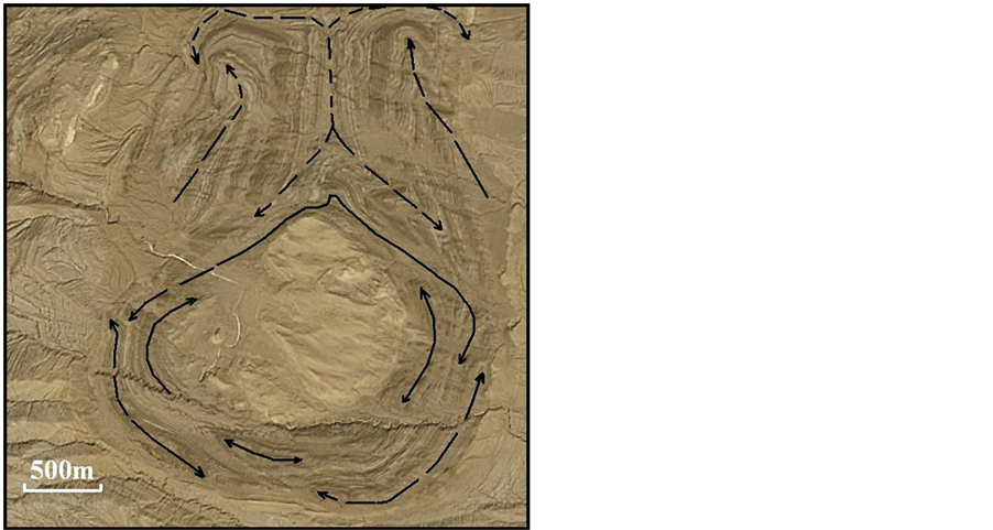 The diapiric province of Qom can be defined as a northwestern-southeastern depression. The maximum longitudinal extension of this province, is about 200 km, which extends from west of Saveh to south of Qom. The implemented studies indicate, that the salts of this province, are mostly of old type and their limited projections, relate to the presence of main structures at the region. There is a separate individual salt dome (Figure 13), at a relatively extensive plain. According to [28] , diapirism of this structure can be assumed to have two separate origins (a combination of old and new type).