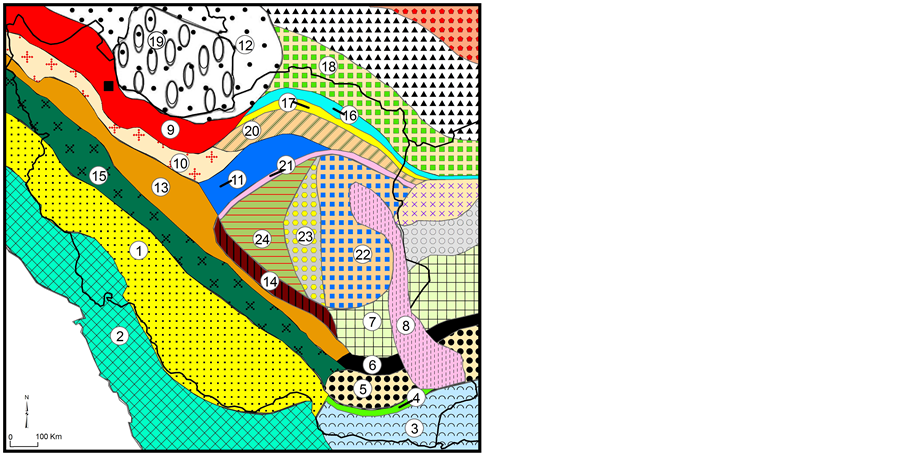 Dominant structural trends in Central Iran (Figure 1) are NW-SE in northwestern part and N-S in eastern part. From tectonics point of view, it contains Iranian plateau. The Iranian plateau is one of the two main plateaus in the Alpine-Himalayan collision system. The basement of the plateau consists of Cimmerian miniplate. Volcanics of Late Cretaceous-Early Miocene age in Central Iran represent Andean type magmatism during Neo-Tethyan subduction [8] .