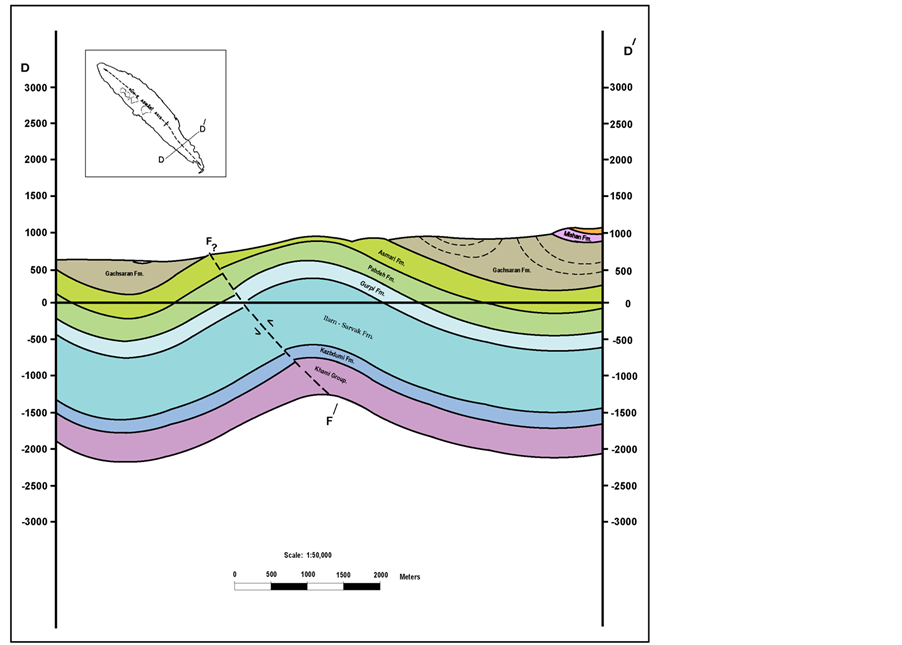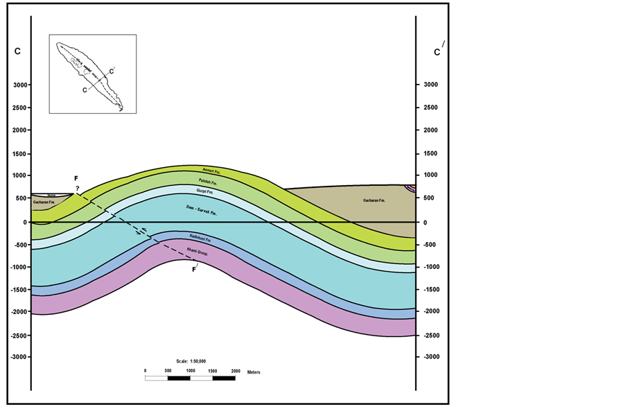Figure 5. Cross section CC’ of the Asmari anticline.