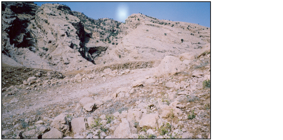 Figure 2. A view from the sulfur springs of Garu in the north-westerly nose of Asmari anticline view toward SE.