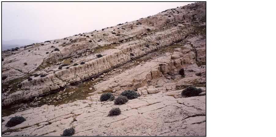 Figure 11. Asmari limestones and their fractures on the northeastern limb of the Asmari anticline, view to the SE.