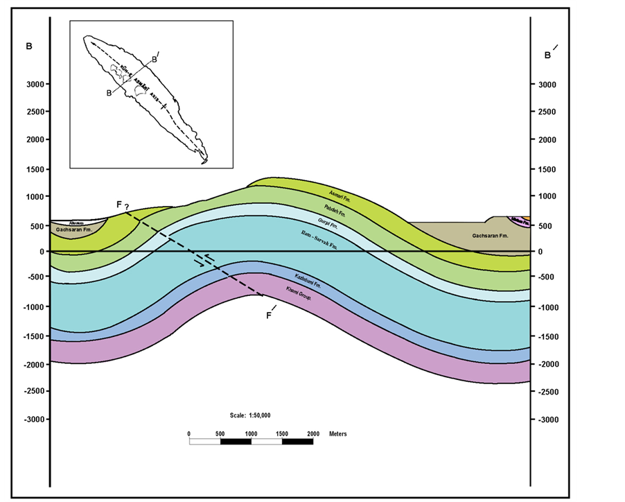 Figure 4. Cross section BB' of the Asmari anticline, modified from [5] .