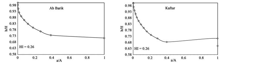 Strahler [5] interpreted the shapes of the hypsometric curves by analyzing numerous drainage basins and classified them as youth (convex upward curves), mature (s-shaped hypsometric curves which is concave upwards at high elevations and convex downwards at low elevations) and peneplain or distorted (concave upward curves) [19] . HI values were grouped into three classes with respect to the convexity or concavity of the hypsometric curve by El Hamdouni et al. [18] : class 1 with convex hypsometric curves (HI ≥ 0.5); class2 with concave- convex hypsometric curves (0.4 ≤ HI < 0.5); and class3 with concave hypsometric curves (HI < 0.4). Ramu and Mahalingam [6] have been classified the HI values as following. If the result value was between 0.6 and 1; it indicates the youthful state of dissection; if the result value was between 0.3 and 0.60, it indicates a maturely dissected landform; and if the result was less than 0.35, then it indicates an equilibrium or old state of dissection.