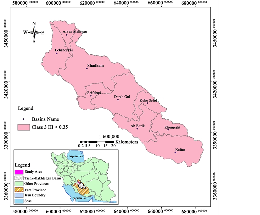 We compare the results in three mentioned classification and provide HI distributions maps based on them to see the visual situation of basin according them (Figure 8). In Strahler [5] , El Hamdouni [18] and Ramu and Mahalingam [6] classification shows all of sub-basins located in class 3.