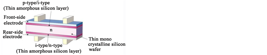By contrast, the HIT Double Module has many layers: a top electrode, p-type amorphous Si, intrinsic amorphous Si, crystalline Si (n-type), another layer of intrinsic amorphous Si, intrinsic amorphous Si, n-type amorphous Si, and a bottom electrode. This multi-layering effect allows light absorption from both sides. Compared with conventional solar cells, HIT solar cells (Figure 2) have a better temperature coefficient and a higher-open circuit voltage [7] .