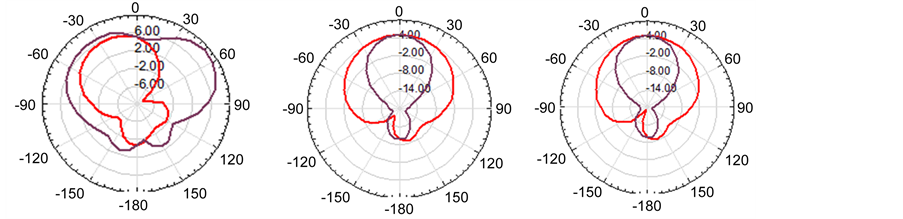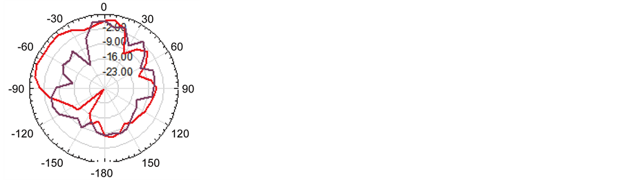 When antenna is designed practically there is always a difference between simulated and measured results is seen because simulated results are on the basis of numerical calculations where as measured results are the practical results shown by the antenna. Another factor is dielectric constant which is taken 4.4 for simulated results but practically this dielectric constant may have some variations that’s why simulated and measured results does not show agreement in the frequency range of 8 - 9 GHz. Graphically described the radiations of antenna as a function of space coordinates are called radiation pattern. It is also called 2D Polor plot. Figure 5 described the polar plots of all iterations at resonant frequency 2.5 GHz in E and H plane of PSFAA. From these figures it is clear that 3rd iteration of the proposed antenna has more gain as compared to 0th
