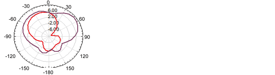 Polar plots for 2nd iteration of this antenna at resonant frequencies 2.5 GHz, 4.1 GHz, 6.9 GHz, 7.4 GHz and 8.2 GHz are shown in Figure 6. From these plots, it is clear that at frequency 2.5 GHz this antenna has a gain of 9.22 dB and maximum gain of 10.26 dB at frequency 6.9 GHz.