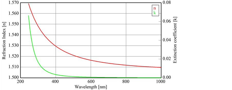 The above equation can be obtained from the series expansion of Equation (2). Cauchy model is an equation relative to the refractive index n, an approximate function of the Sellmeier model [14] .