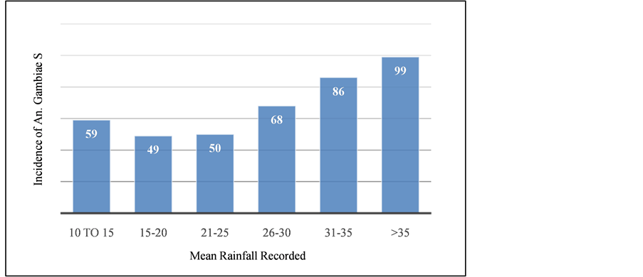 With gambiae S, prevalence was found to be highest within rainfall ranges of between 26 mm and 36 mm and beyond (Figure 3).