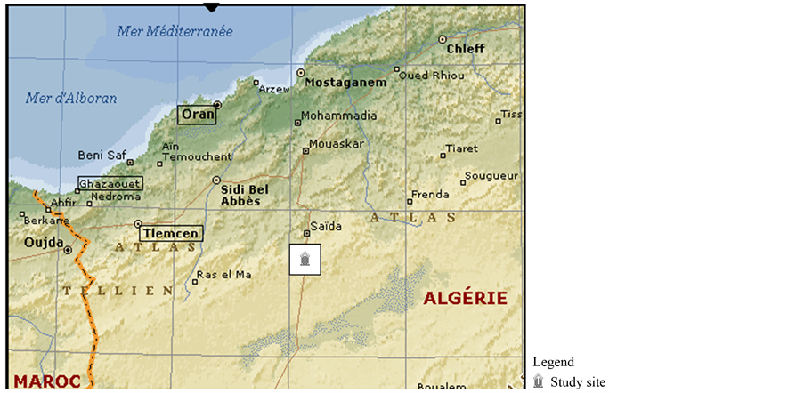 The study area is located in the southern part of the wilaya of Saïda (western Algeria). It is naturally limited by a series of Djebel oriented north to northeast with Djebel Sidi Youssef (1338 m) and Djebel Harchoune (1259 m). These mountains are arranged in a southwest and north and are bowing to the south in the direction of high steppe plains (Figure 1).