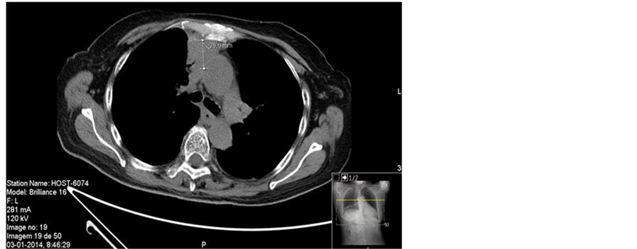 According to the Masaoka Clinical Staging, the grade of invasion of our patient’s thymoma can be stratified in stage IVA due to its pleural and pericardial dissemination. It was not considered amenable to complete resection so the diagnosis was established prior to therapy using biopsy. Noteworthy, on average, only 25% of patients with stage IV thymomas are submitted to complete resection. For initially Masaoka stage IVA unresectable disease, it is recommended treatment with neoadjuvant chemotherapy [10] . The thymoma of our case report was submitted to eight cycles of chemotherapy with the intent to improve the chances of being completed resected. The success of treatment was compromised by severe toxicity and low chemosensitivity. Refractoriness to at least one prior chemotherapy regimen is not uncommon in disseminated thymomas. Nonetheless, the availability of data related to the outcomes of chemotherapy as the primary therapy in advanced thymoma is li-