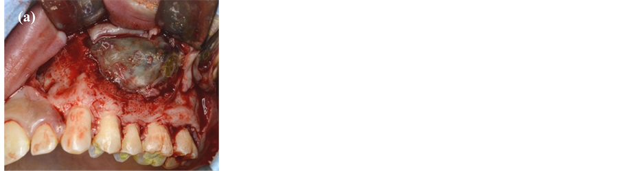 Figure 4. The lesional area after raising the mucoperiosteal flap (a) and the lesion being surgically removed (b).