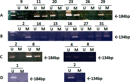 The results of MSP are summarized in Table 2. Association between clinicopathological findings and MSP results in OLP are summarized in Table 3, and typical gel pictures of MSP are shown in Figure 1.