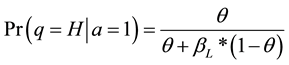 2) The L-type firm goes public with probability βL and for an acquisition with probability (1 − βL) such that,
