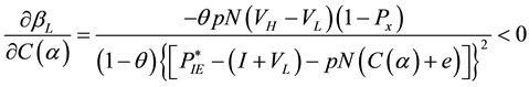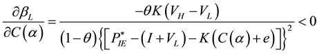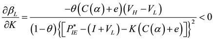 To derive the relationship between probability of choosing IPO (βL) and the parameters of the book building process, we partially differentiate βL in Equation (15) with respect to K, C(α) and e.