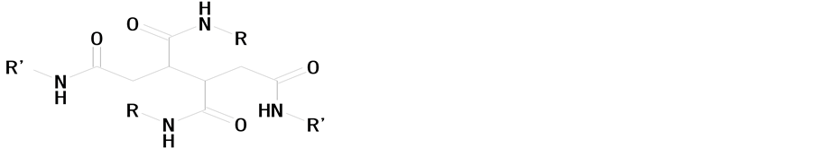 The chemical structure of the newly synthesized organogelators is that of butane 1,2,3,4-tetracarboxamide, as shown in Figure 1. The chemical side chain R was fixed as oleyl and the side chain R’ was varied as shown in Table 1 (compounds 1 - 7). The method of synthesizing compound 5 is described in detail as an example: