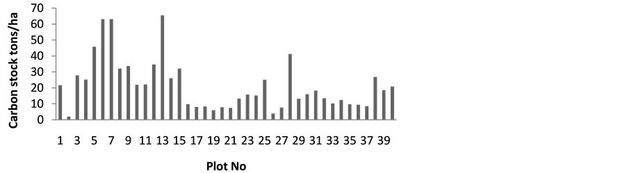 Figure 4. Plot wise mean carbon stock (ton) ha−1.