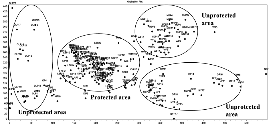 protected areas, however, the difference based on the two samples t-test was not significant (P > 0.05) (Figure 4).