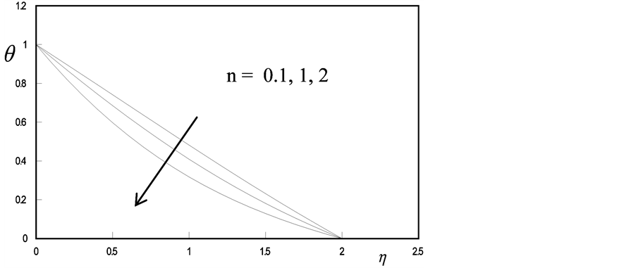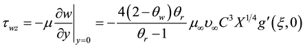Figures 9-11 show as expected, that the dimensionless velocities and temperature increase as the thermal conductivity parameter increases. This is because as increase the thermal conductivity of the fluid increase. This increase in the fluid thermal conductivity increases the fluid temperature and accordingly the fluid velocity. Figures 12-14 show that the increasing in the temperature ratio parameter tends to increase the dimensionless velocities, and the dimensionless temperature. This result is expected because as increases the temperature difference increases and so the temperature of the fluid Also, it is observed from Figures 15-17 that as the viscosity -temperature parameter increases the dimensionless velocities, increase and the dimensionless temperature decreases. A decrease in the dimensionless temperature means a decrease in the fluid viscosity, which is a gas in this problem. This decrease in the fluid viscosity increase its velocity.