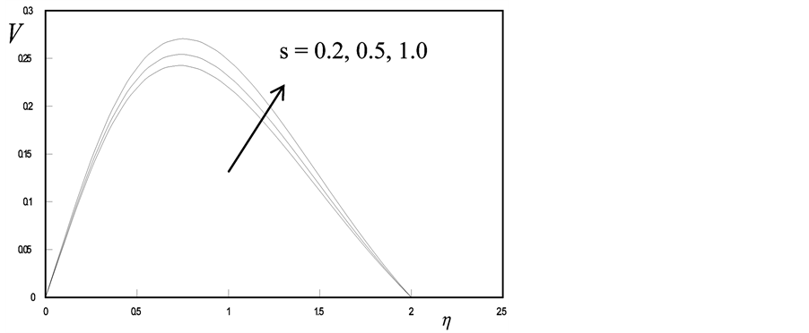 Figure 9. Effect of the parameter s on the primary flow velocity V.
