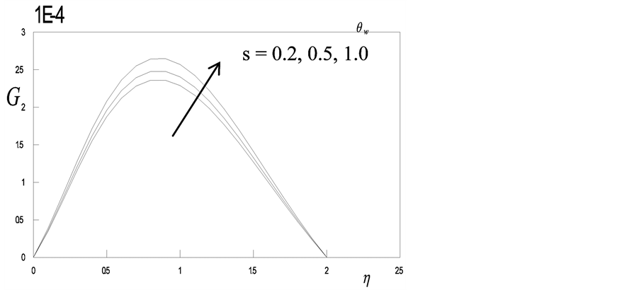 Figure 10. Effect of the parameter s on the secondary flow velocity G.