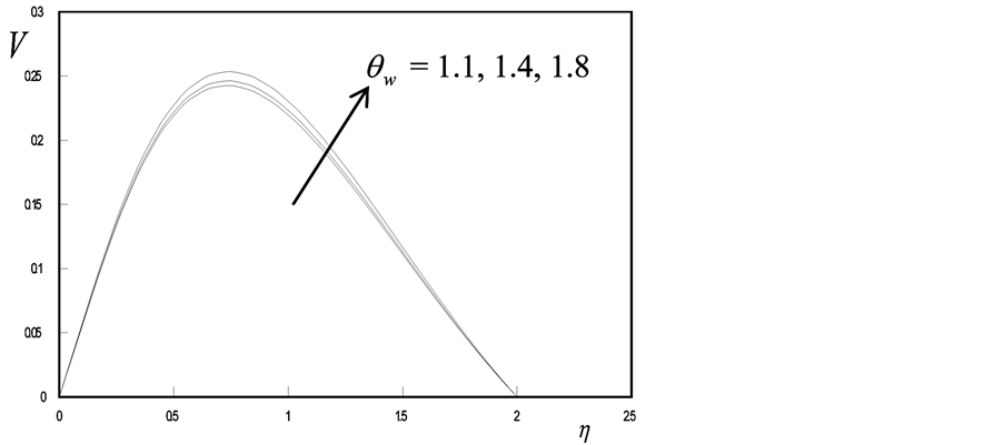 Figure 12. Effect of the parameter θw on the primary flow velocity V.