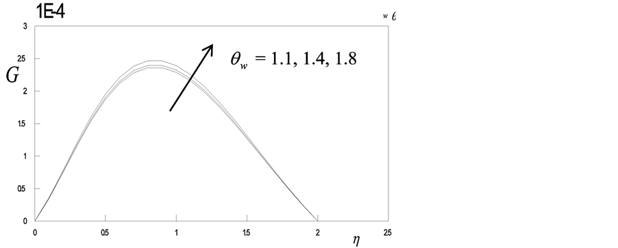 Figure 13. Effect of the parameter θw on the secondary flow velocity G.