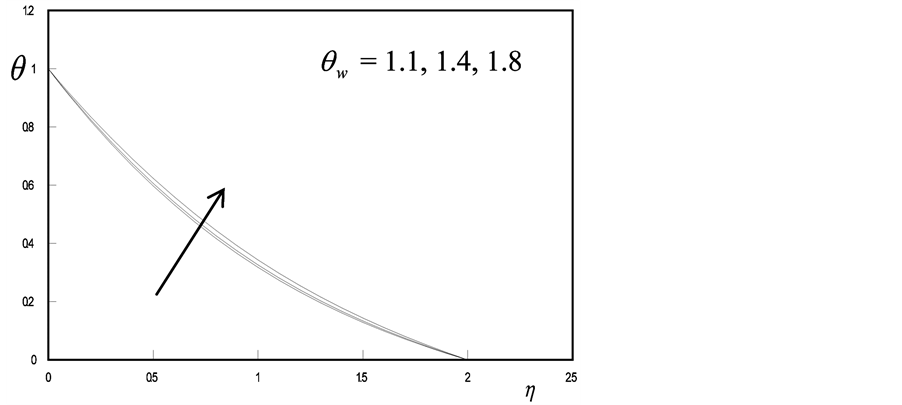Figure 14. Effect of the parameter θw on the temperature θ.