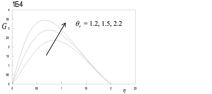Figure 16. Effect of the parameter θr on the secondary flow velocity.