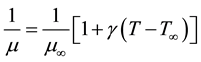 The fluid viscosity is assumed to vary as a reciprocal of a linear function of temperature in the form (see Lai and Kulacki, ref. [13] )