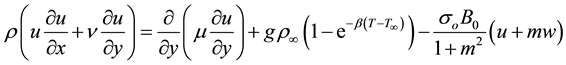 Some recent studies for radiating fluids have taken into account variations of the physical properties with temperature. For example, Aboeldahab [21] studied radiation and variable density effects on the free convective flow of a gas past a semi-infinite vertical plate and showed that for high-temperature differences the Boussinesq approximation leads to substantial errors in velocity and temperature distributions also Jaber [22] studied the combined effects of Hall currents and variable Viscosity on Non-Newtonian MHD flow past a stretching vertical plate. He showed that the variable viscosity effect the temperature and flow velocity. Aboledahab and El Gendy [23] studied the radiation effect on convective heat transfer in an electrically conducting fluid at a stretching surface with variable viscosity and uniform free stream. They showed that the flow characteristics are markedly affected by the variation of viscosity with temperature. Aboeldahab and Salem [24] studied the radiation effect on the MHD free-convective flow of a gas past a semi-infinite vertical plate with variable viscosity. Also, they showed that the flow characteristics are markedly affected by the variation in viscosity with temperature.