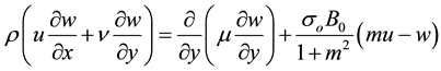 A uniform magnetic field is applied transversely to the direction of the flow. The magnetic Reynolds number is taken to be small enough so that the induced magnetic field can be neglected.
